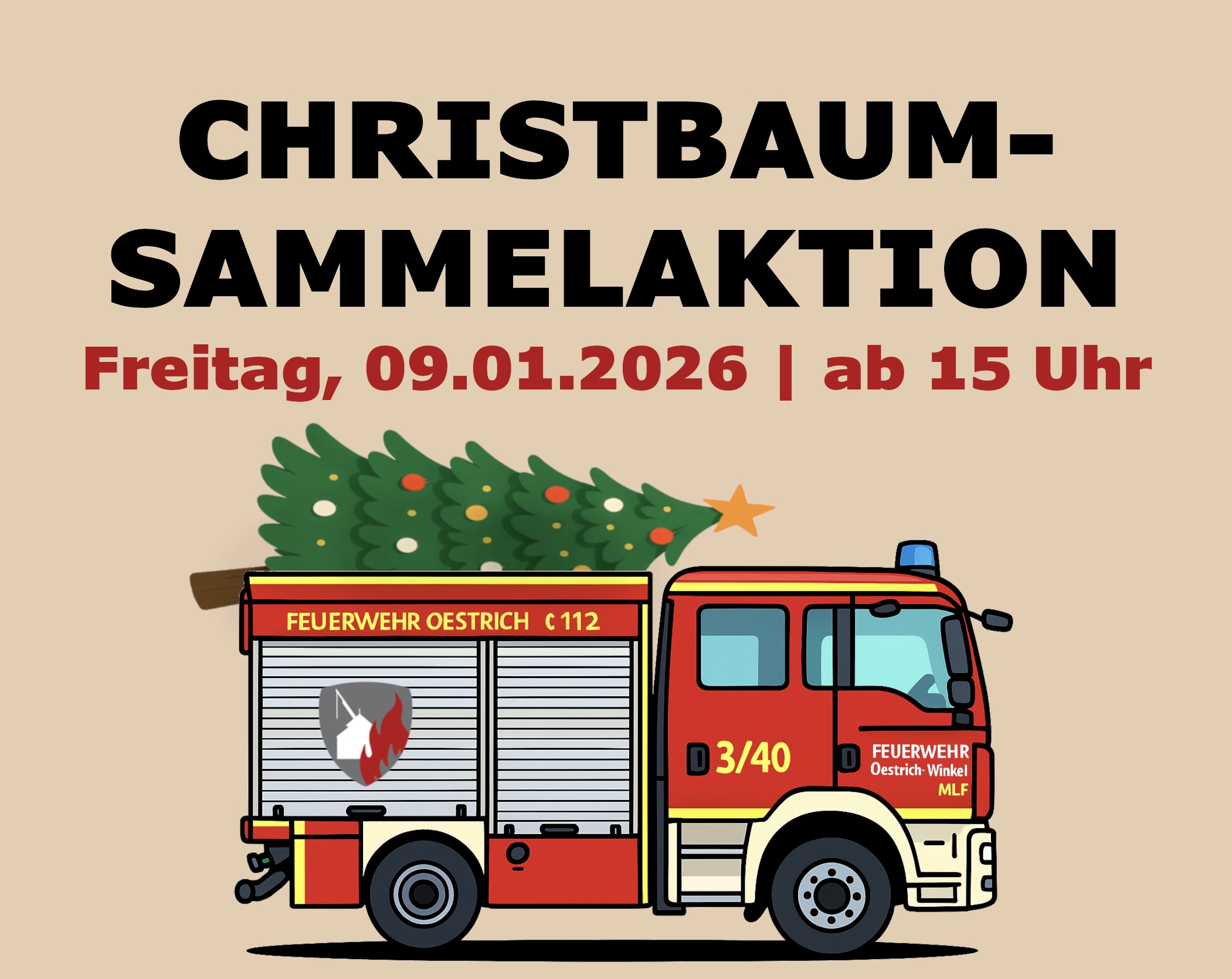 Christbaumsammelaktion am Freitag Freitag 09.01.2025 ab 15 Uhr Auch in diesem Jahr sammeln wir wieder die Christbäume in Oestrich ein.Bitte stellt eure